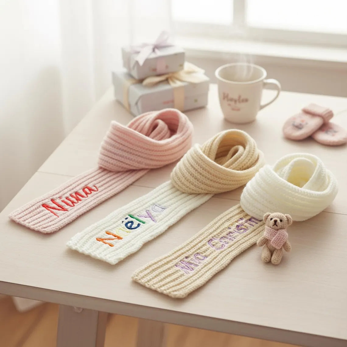 Custom Winter Scarf with Embroidered Name | Personalized Knit Scarf Gift