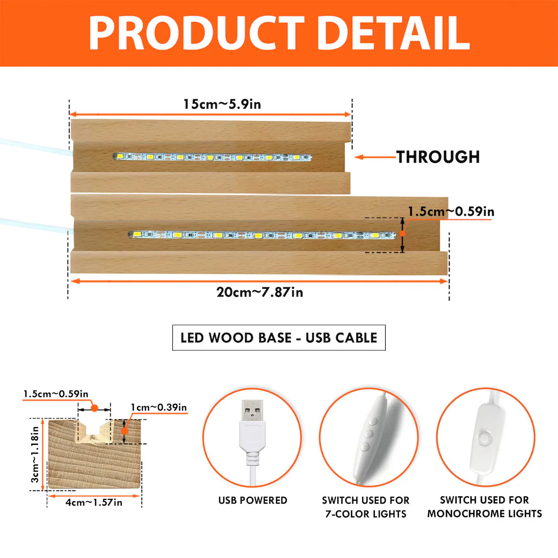 Made with a wood base and 2D acrylic light panel, this night light creates a soft, vivid illumination with a subtle 3D effect that is eye-catching yet gentle for nighttime use.
