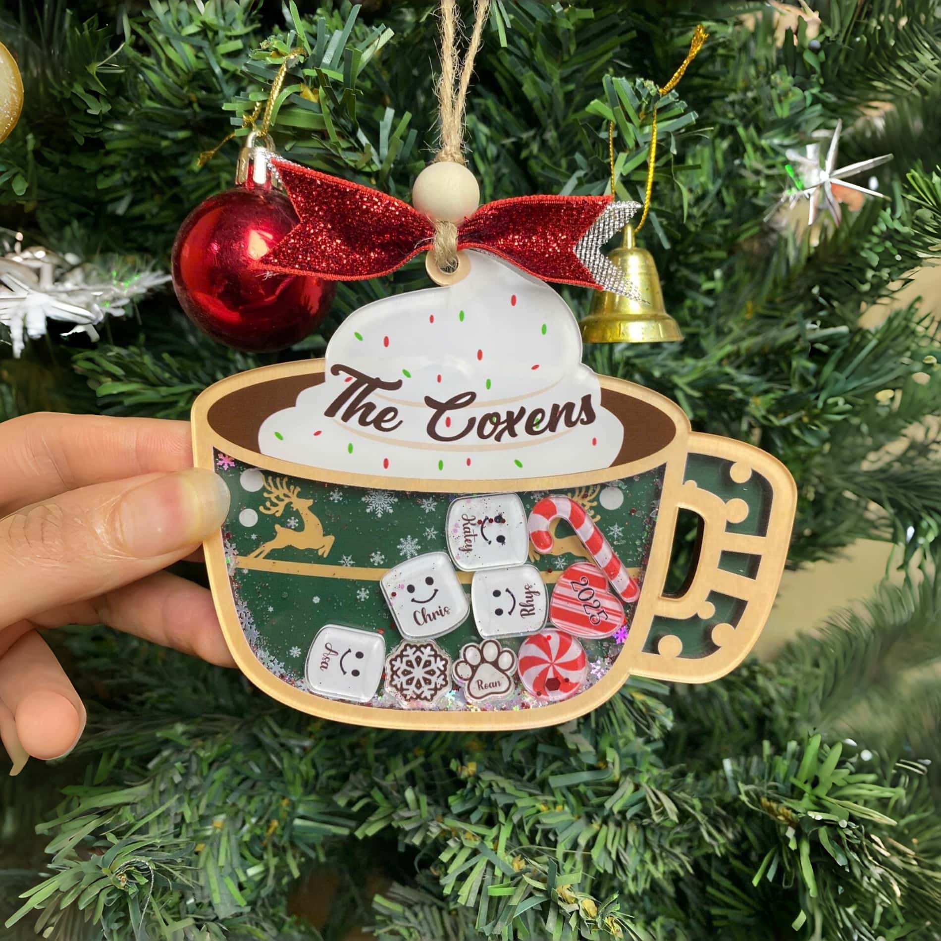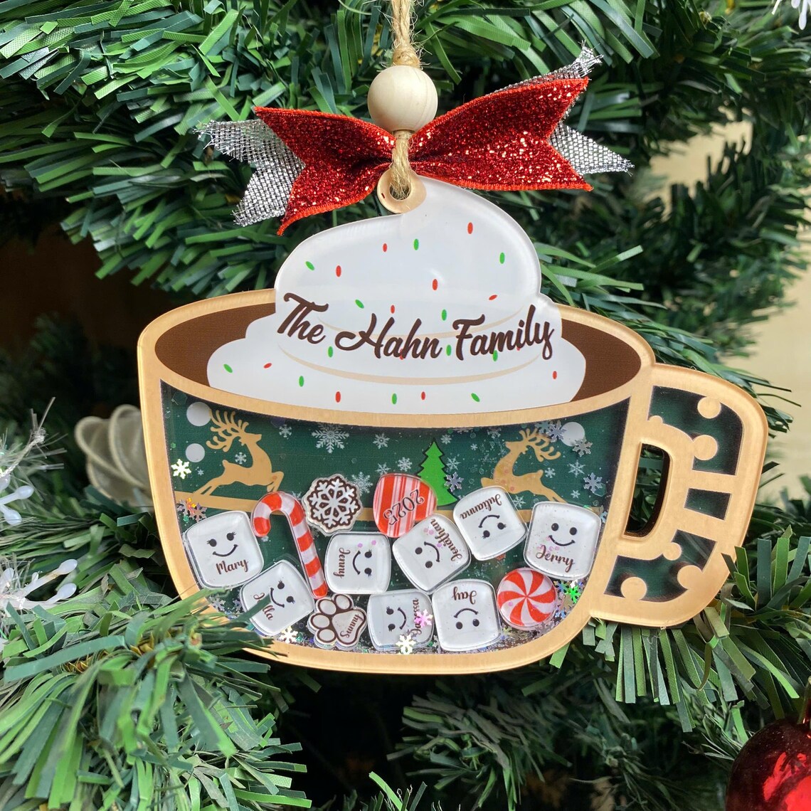 🎄 Personalized Marshmallow Family Ornament 2025 – Custom Family Name Shake Cup Ornament